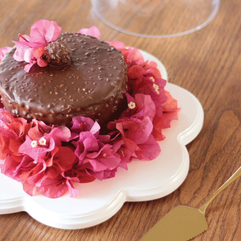 The crisp white finish contrasts beautifully with golden accents and floral garnishes, making it an eye-catching centrepiece for tea parties, special occasions, or everyday indulgence.
